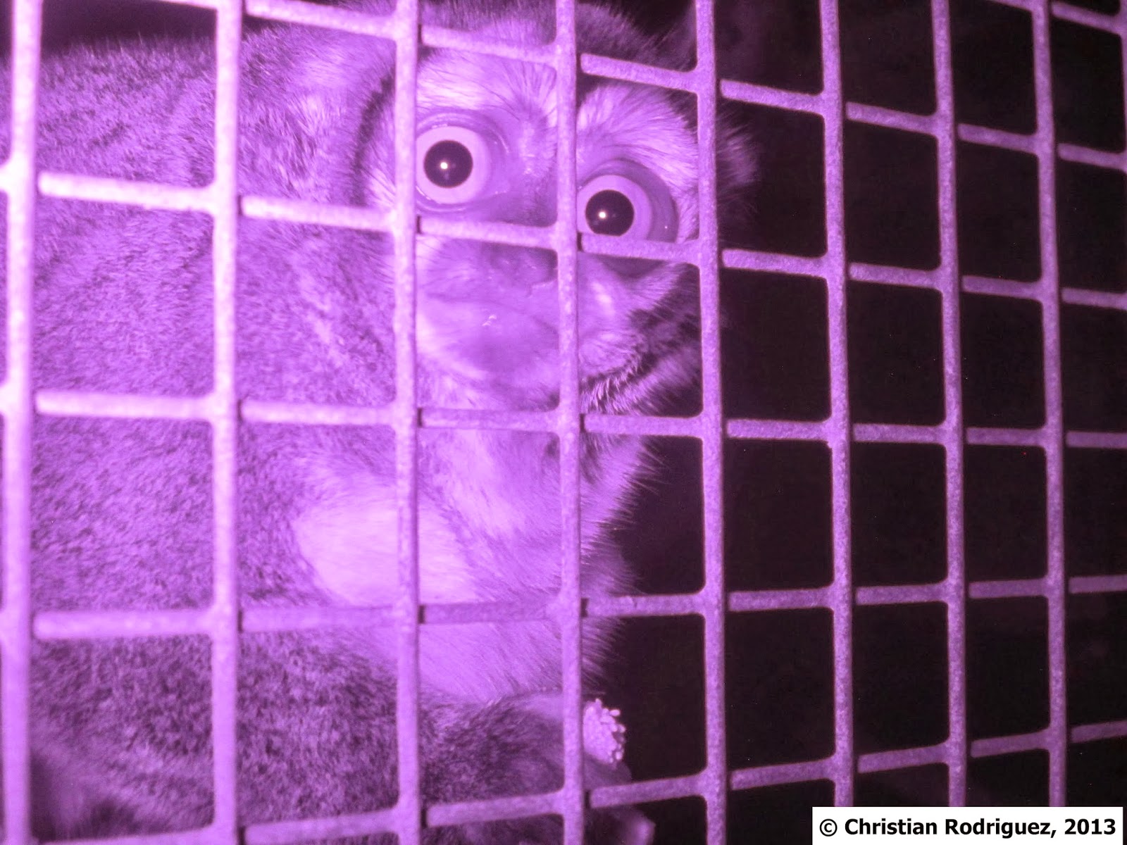 Back to the pairs though, my last pairing of the summer was by far the most difficult and rewarding pairing I had in the two years of monitoring the program. It was Mochika and Vincent. We initially tried to pair them before I left to Duke for a month (unsuccessfully at that). Mochika, as is common to her, was very frightful of the sounds and thus quite spastic. Vincent responded in an active "pursuant" manner, and well...it backfired. Mochika ended up on the floor of her enclosure. Sian and I decided it was best to separate them. However, we decided we would try again. A while before I came back from Duke, Mochika went into Vincent's enclosure and Vincent went into Mochika's enclosure. We did pair them again, and it was exhausting - but alas successful. Mochika responded in the same manner as the first attempt to pair her, however, Vincent did not. This time Vincent was much more patient with her, and docile. He initiated contact often, but not aggressively. By the end of the night they had mated and groomed. Sunday I got word that Mochika is very much liking Vincent, and following him everywhere. Possibly, there may even be an infant on the way!